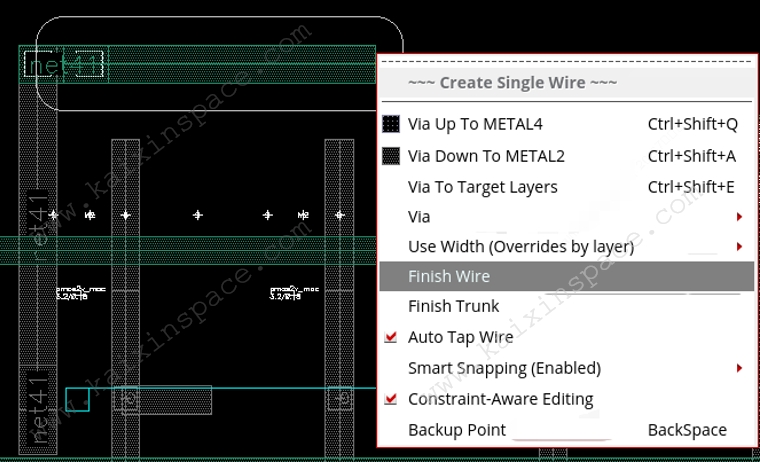 在走线模式下,点击 指定 net 或 bus 线,然后鼠标右键,在弹出的框框中,选择 Finish Wire ,即可完成自动走线和打孔。
